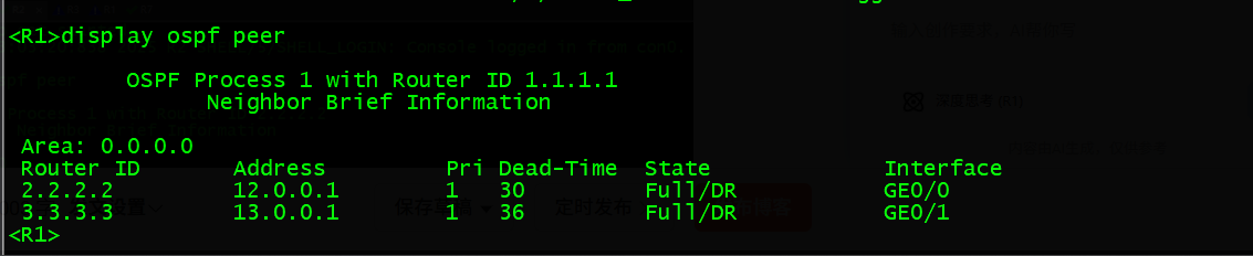 [R1-ospf-1]area 0 ---- 加入OSPF区域0