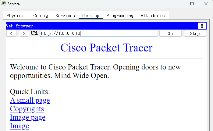 在Server4服务器浏览器中访问静态NAT转换后的公网地址 (如访问 http://10.0.0.10)