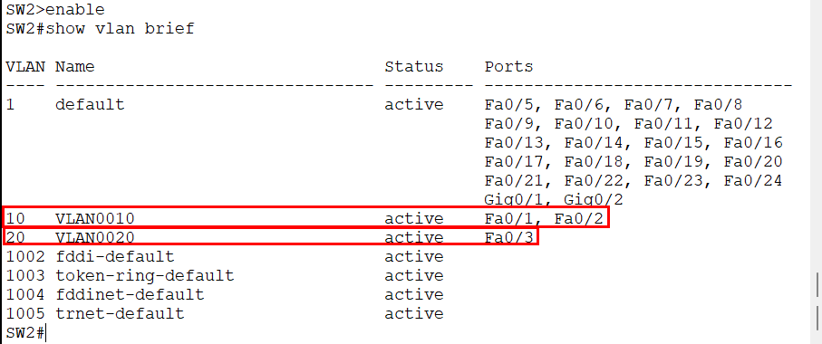 SW2(config-if)#switchport access vlan 20 # 划入VLAN20