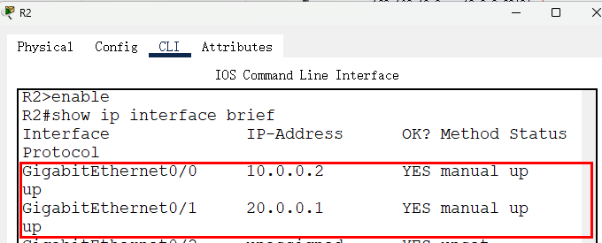 R2(config-if)#ip address 20.0.0.1 255.255.255.0 # 配置20.0.0.0/24网段IP