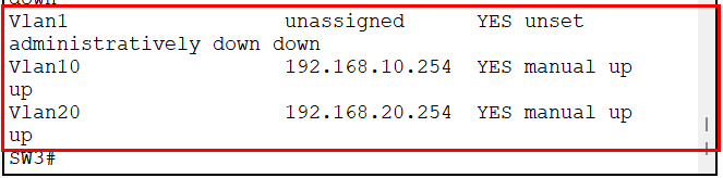 SW3(config-if)#ip address 192.168.30.1 255.255.255.0 # 配置192.168.30.0/24网段IP
