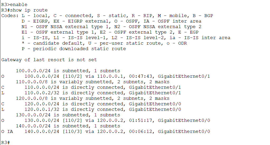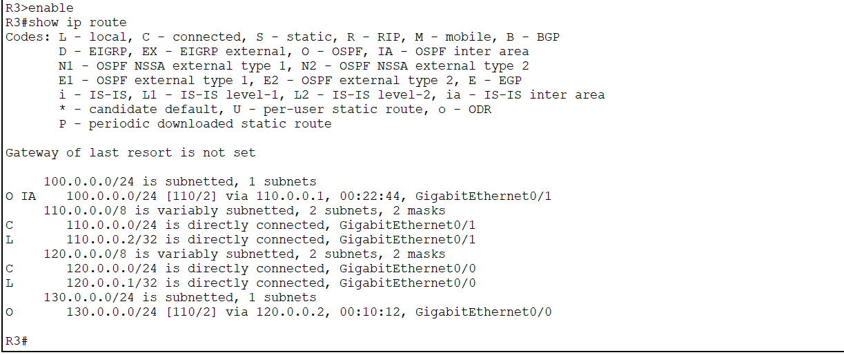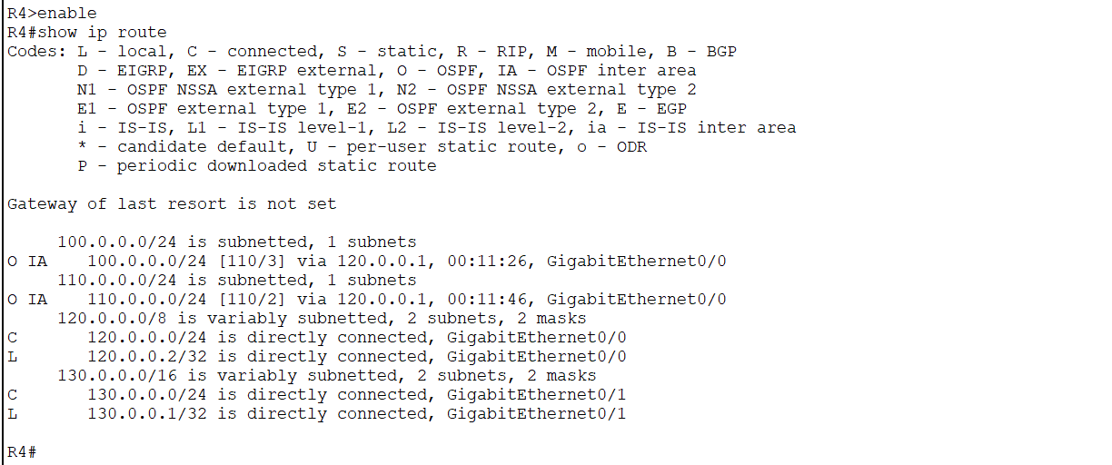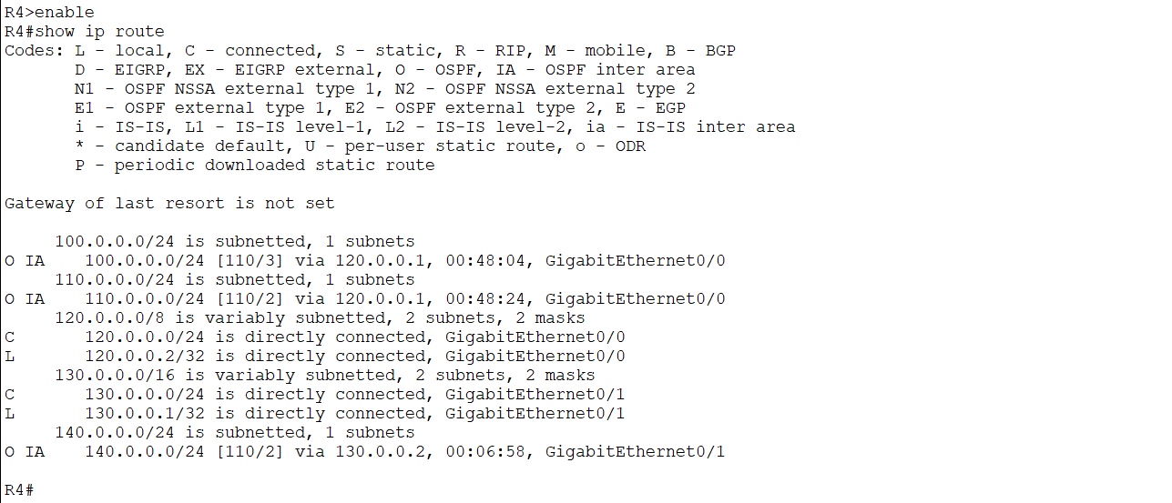 R4(config-router)#network 130.0.0.0 0.0.0.255 area 3 # 宣告网段到Area 3
