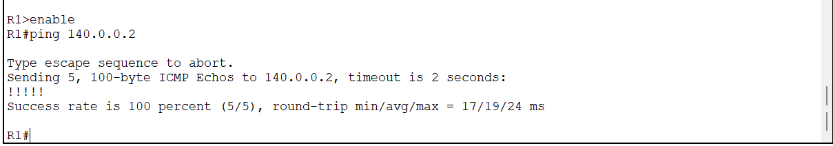 R5(config-if)#ip address 140.0.0.1 255.255.255.0 # 配置IP