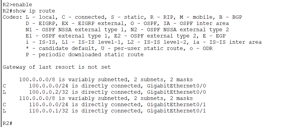 R2(config-if)#ip address 110.0.0.1 255.255.255.0 # 配置IP