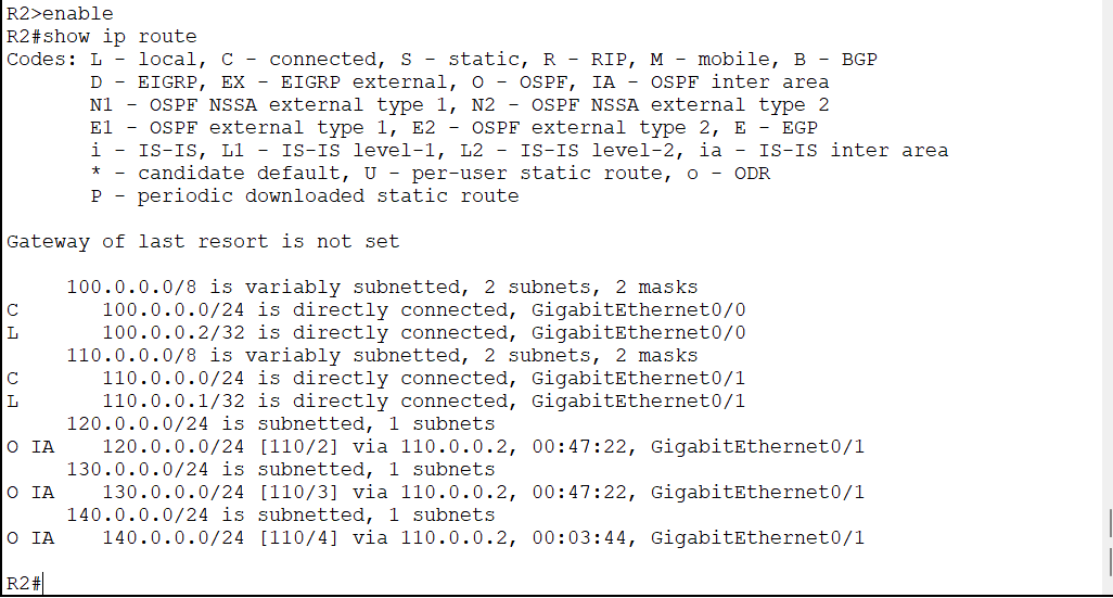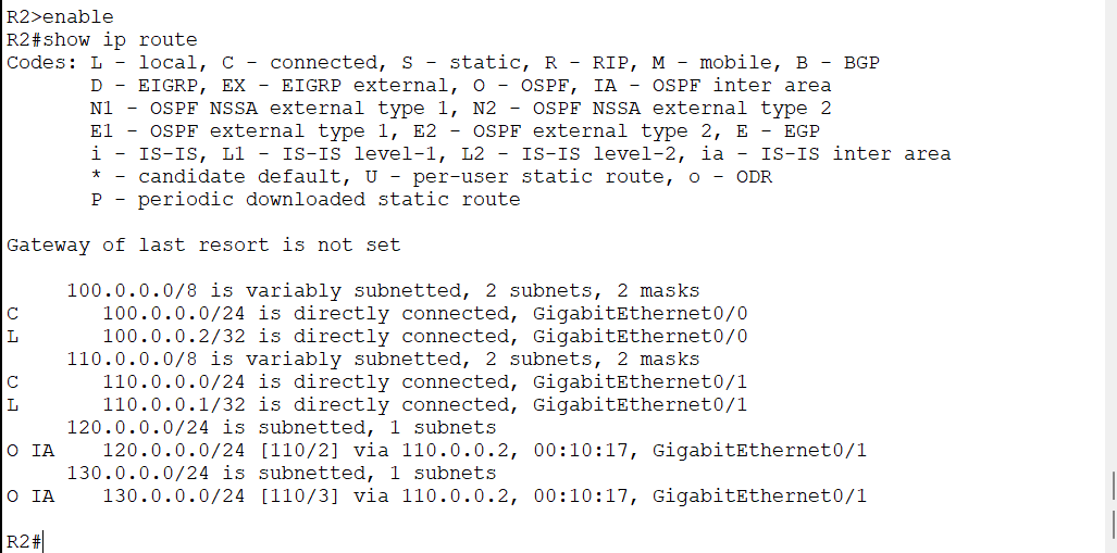 R2(config-router)#network 100.0.0.0 0.0.0.255 area 0 # 宣告网段到Area 0