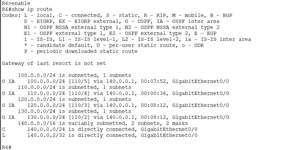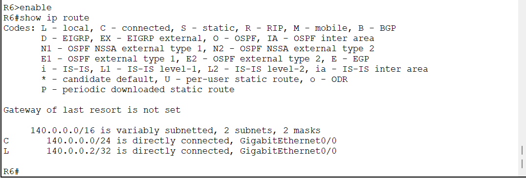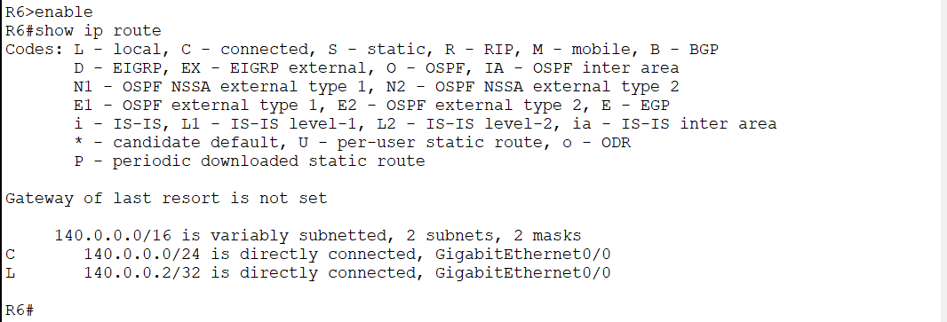 R6(config-if)#ip address 140.0.0.2 255.255.255.0 # 配置IP