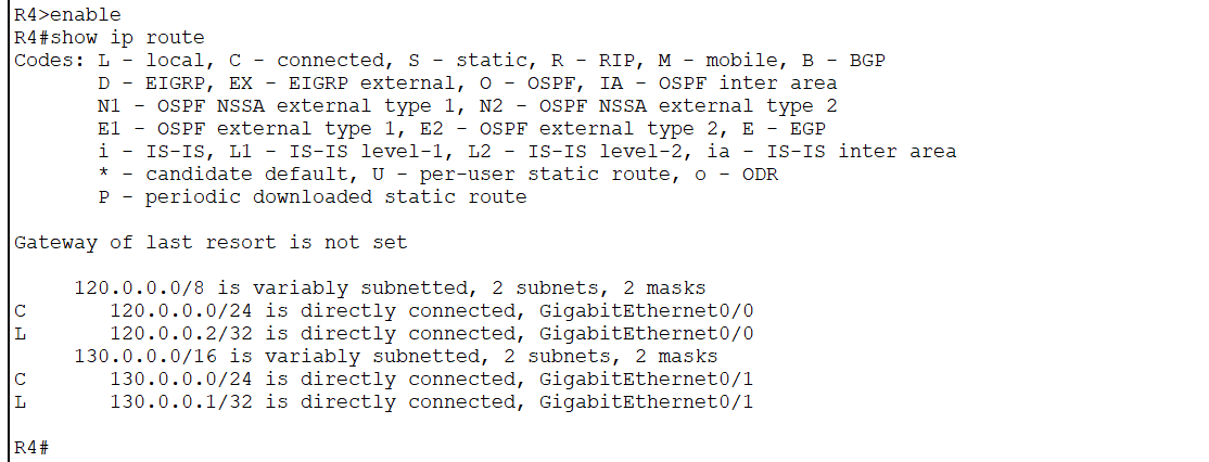 R4(config-if)#ip address 130.0.0.1 255.255.255.0 # 配置IP