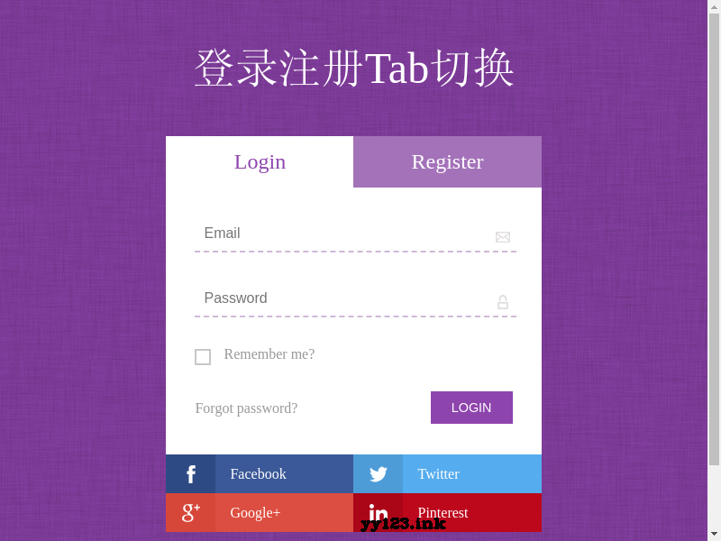 博客提供一个登录注册页面HTML模板,该模板中登录和注册采用tab选项卡切换的方式呈现,并给出了下载地址。