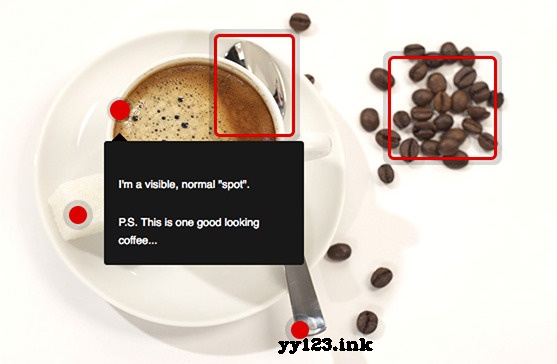 Hotspot Map是一个很容易添加注释,文本的插件,或其他图像,在你想要的位置添加。它配备了精确绘图和斑点定位一个功能强大的编辑器。你也可以编辑设置,预览和编辑的最终结果将为您生成的HTML和JS代码!这一插件的最强大的功能是它配备了编辑器。你不需要手动指定的坐标和图像上的每个点的尺寸。添加每一个点都是可视化的,然后请单击“生成”,你会看到一个预览最终结果!可以使用编辑器创建一个简单的圆形斑点–固定的宽度和高度,四种不同的类型,你选择的尺寸,或不可见的版本。每个单独的弹出框,你可以指定一个固定的或自动的宽度和位置–顶部,底部,左或右。这给你一个很大的灵活性,建立热点这个工具正是你需要的!插件使用方法调用插件相关文件用编辑器获取HTML和javascript代码test$("#hotspot-32").hotspot({ "show_on" : "mouseover" });