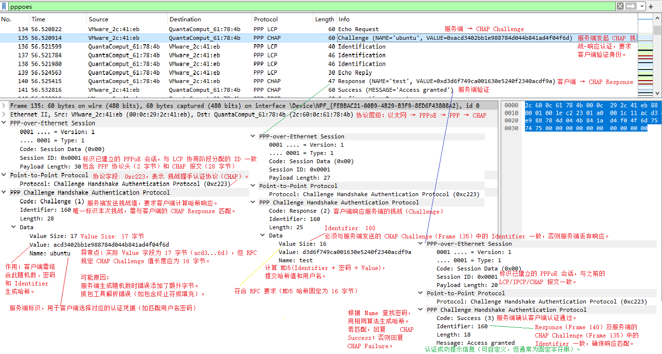 - 验证客户端能否正确发送 `PADI`,服务器能否响应 `PADO`,并最终建立会话(`PADS`)。