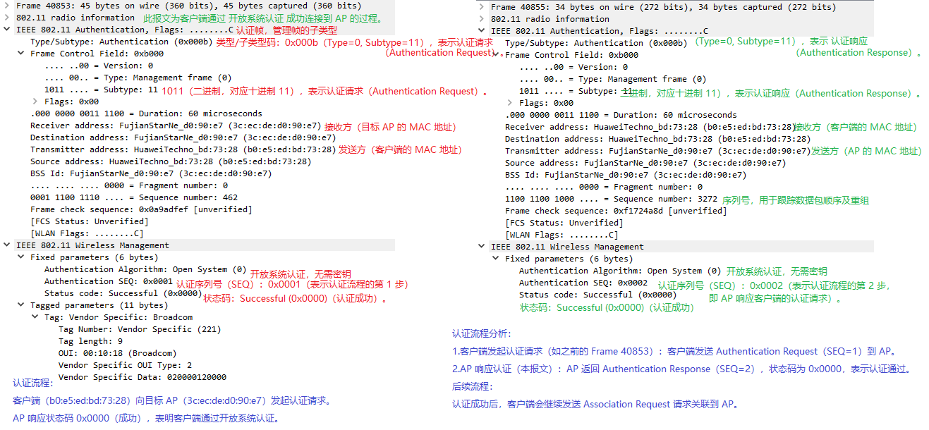认证是sta和 AP 之间相互确认身份的过程。在传统的 WiFi 认证中,有两种方式: