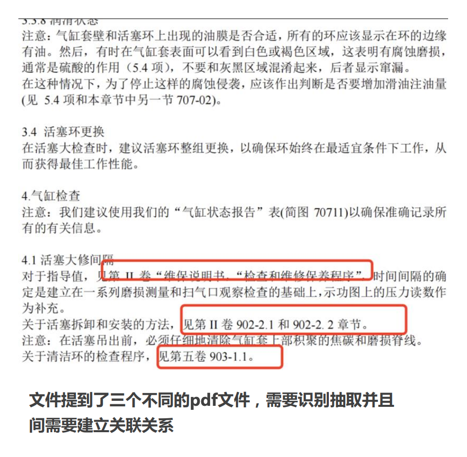 跨文档信息关联:能识别并抽取PDF文件中提到的不同文件信息,建立文件间的关联关系,例如明确不同维修手册、技术文档之间的引用和关联,让分散的信息形成整体。