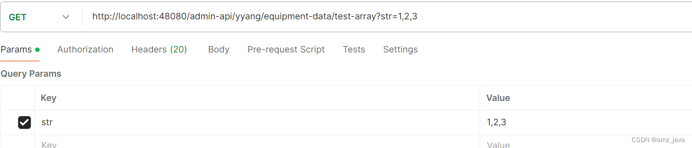 postman : get请求方式 http://localhost:48080/admin-api/yyang/equipment-data/test-array?str=['1','2','3']