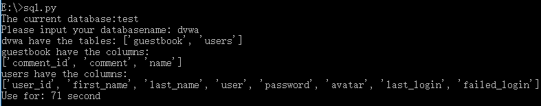 主要思路:获取当前数据库名--选择数据库--获取这个数据库有几个表--依次获取每个表的长度--依次获取获取表名--依次获取每个表的长度、列名。