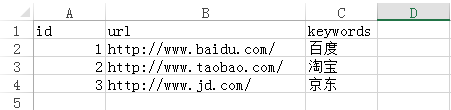 #! /usr/bin/env python # _*_ coding:utf-8 _*_ import csv csvfile = file('test.csv', 'wb') csvfile.write(u'\ufeff'.encode('utf8')) writer = csv.writer(csvfile) writer.writerow(['id', 'url', 'keywords']) data = [ ('1', 'http://www.baidu.com/', '百度'), ('2', 'http://www.taobao.com/', '淘宝'), ('3', 'http://www.jd.com/', '京东') ] writer.writerows(data) csvfile.close()