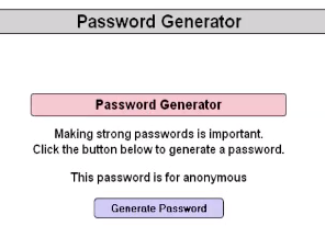 另一个例子是我们访问一个密码生成器的网页。乍一看,页面看起来不容易受到任何攻击,因为我们所要做的就是按“生成密码”按钮。