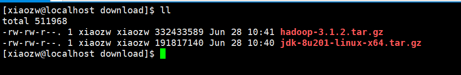 1. 下载hadoop和jdk安装包到指定目录,并安装java环境。