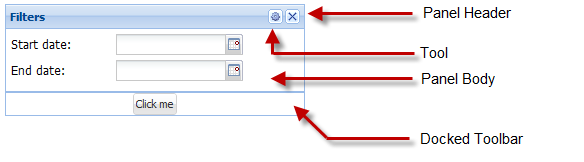 Panel可以包含底部和顶部的工具栏,以及独立的页眉,页脚和正文部分。Panel还提供了内置可折叠、可扩展和可关闭的行为。Panel能够很容易的添加到Container或Layout。布局和渲染管线完全由框架管制。