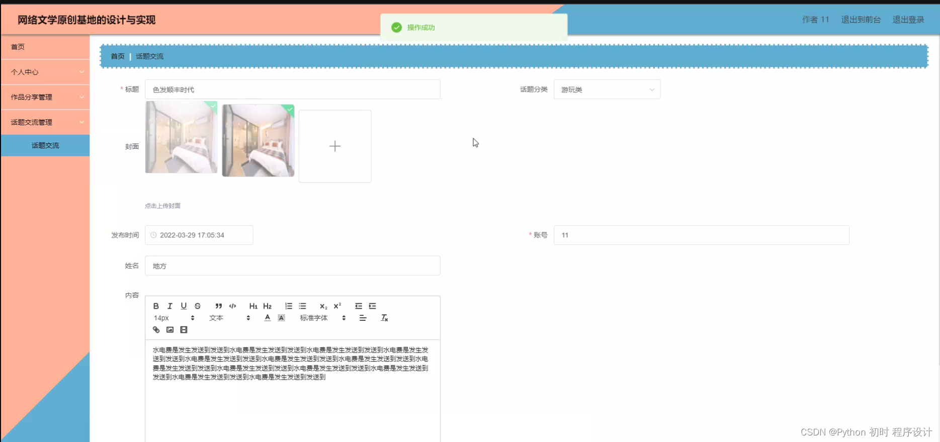 选题背景: 网络文学原创基地的设计与实现是基于当前互联网时代蓬勃发展的网络文学产业的需求而提出的。随着互联网技术的迅猛发展,网络文学作为一种新兴的文化形式,已经成为人们日常生活中不可或缺的一部分。越来越多的作家和读者通过网络平台进行创作和阅读,网络文学市场也呈现出蓬勃的发展态势。然而,由于网络文学的特殊性,存在着版权保护、内容质量、创作环境等方面的问题,亟需一个专门的平台来解决这些问题。