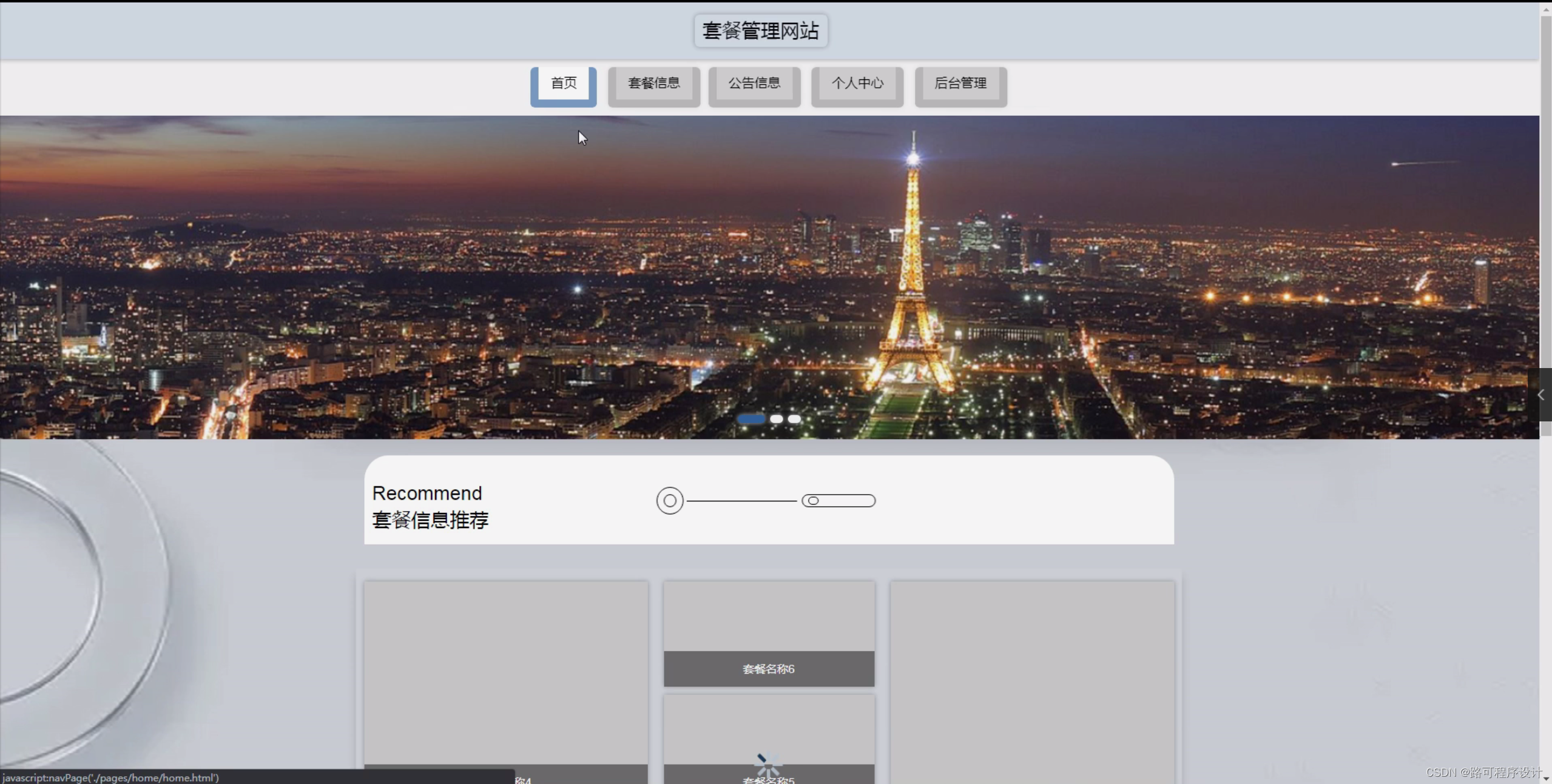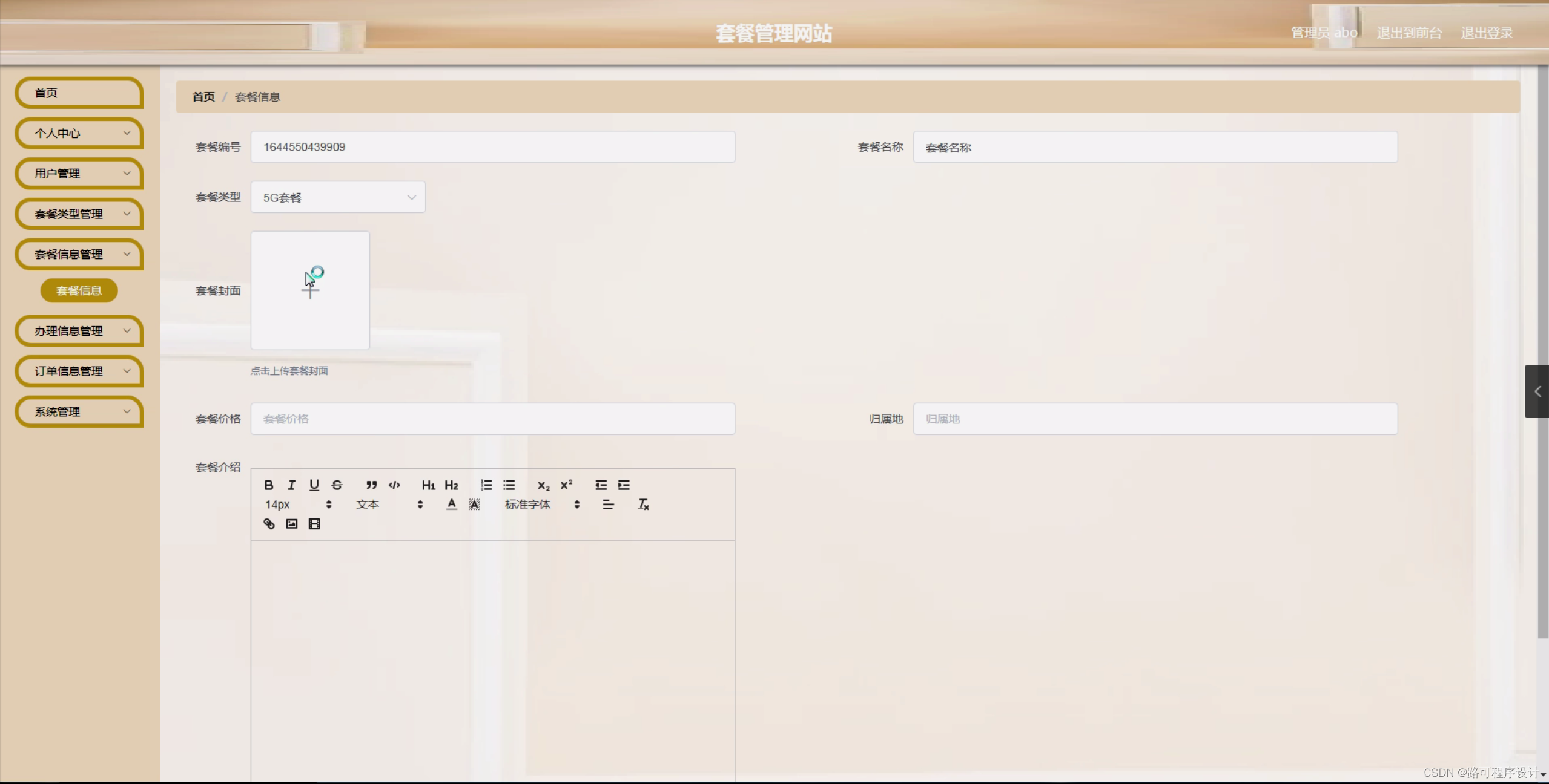 在当今数字化时代,网络服务已成为人们日常生活中不可或缺的一部分。随着互联网技术的不断发展与普及,线上服务变得越来越多样化和便捷化。套餐管理网站作为一种新型的网络服务平台,为用户提供了各种套餐的详细信息、比较分析以及购买管理等功能,涵盖了通信、网络、餐饮、旅游等多个领域。这类网站的出现,不仅极大地丰富了消费者的选择,也促进了相关行业的市场竞争和服务提升。然而,伴随着套餐管理网站的快速增长和用户需求的不断变化,如何设计一个用户友好、功能全面且安全可靠的网站平台,成为了业界亟待解决的问题。因此,研究并开发一个高效、便捷的套餐管理网站,对于满足现代社会的需求具有重要意义。