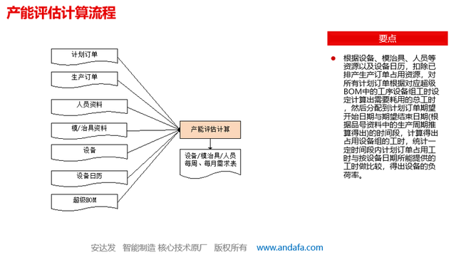• 它通过同步考虑多种有限能力资源的约束,依据各种预设规则,通过非常复杂的智能化数学算法,反复模拟、试探、优化、计算,最终给出相对最优的详细计划。
