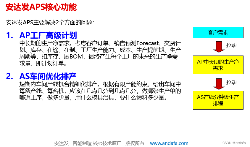 安达发经过20年如一日持续打磨的产品与行业经验,是业界优秀的“APS高级计划排产、MES制造执行、WMS智能仓储、SCM供应链管理”等软件原厂商,对多行业的系统落地实施的顺利进程进行全方位服务,可针对家电企业的生产特点,为家电企业的智能制造项目的成功落地,提供一体化解决方案。
