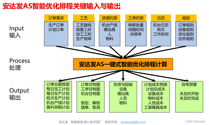 APS高级排产是一种基于供应链约束理论的先进计划与排产软件系统,可以通过计划订单产生短期内精确的机台生产计划,运行安达发AMRP与库存展望,系统自动拉动产生出每天的外购料需求计划。把每天、每周、每月的外购料需求计划通过互联网SCM展望给供应商,从而让供应商同步的安排其自己的交货计划与生产计划,从而实现了JIT式的采购与送货计