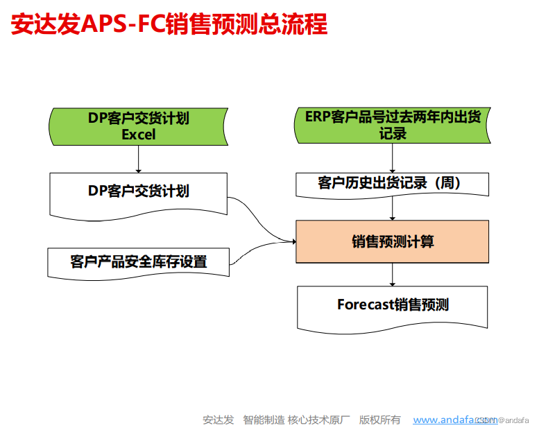 APS智能排产通过考虑过去2年客户历史出货记录(每周),考虑客户已经下达的周交货计划、考虑 客户+产品的安全库存量,综合计算出这个客户未来每周的销售预测需求。