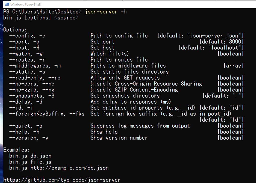 - 安装完之后 npm json-server -h 检查是否安装成功