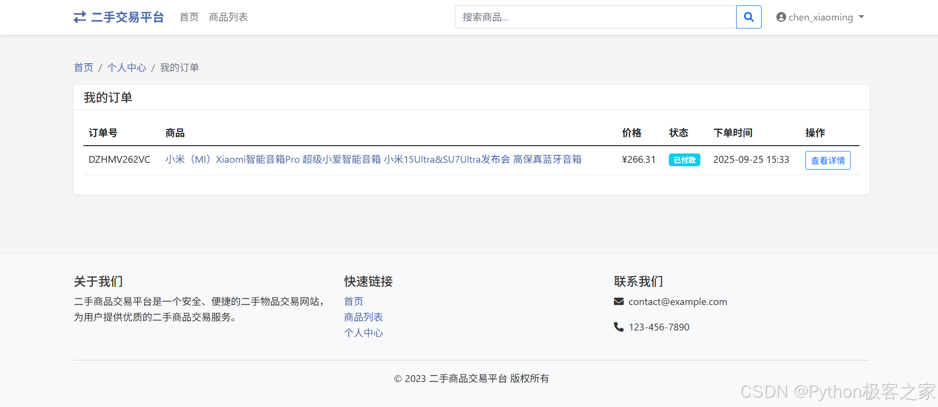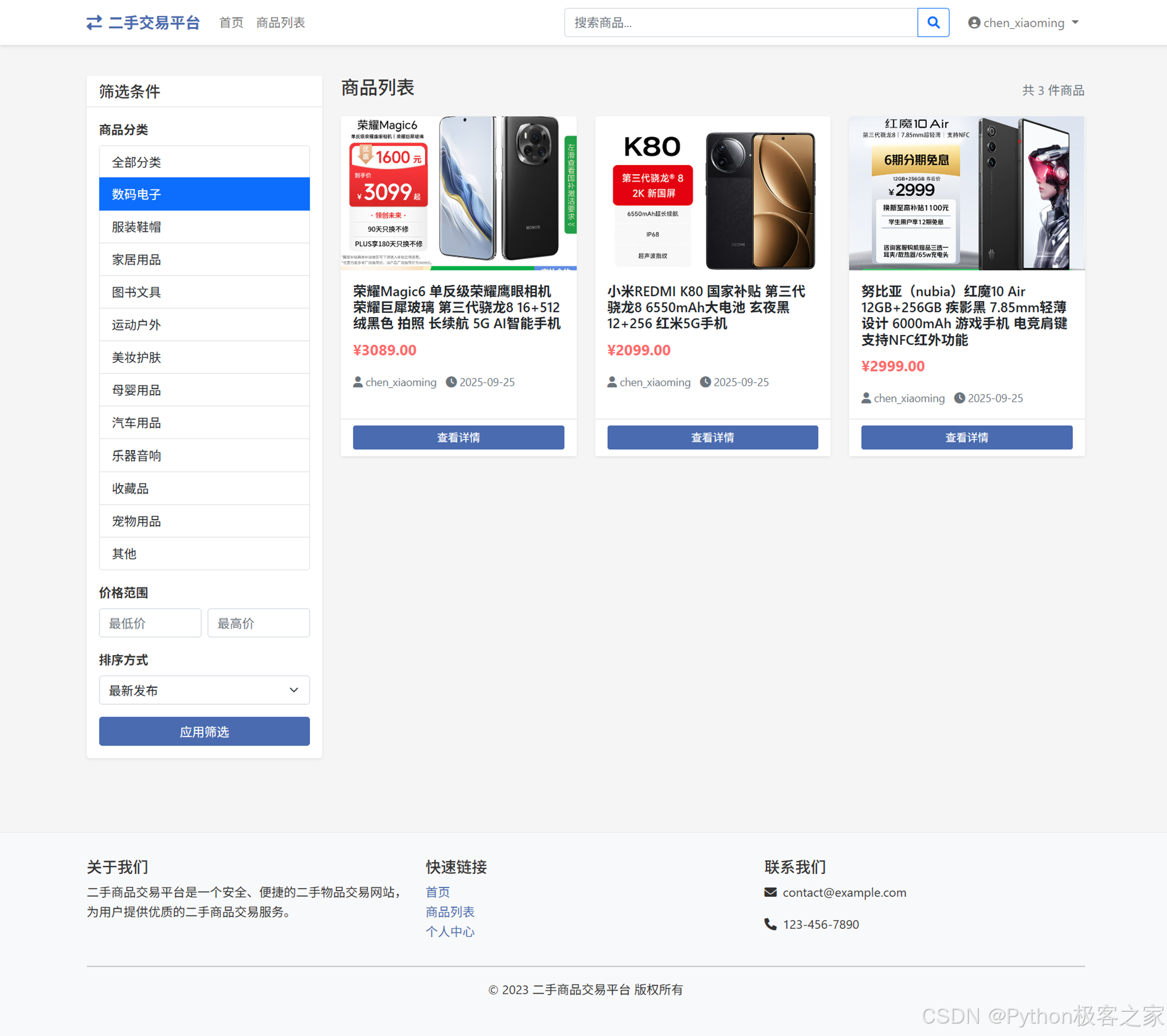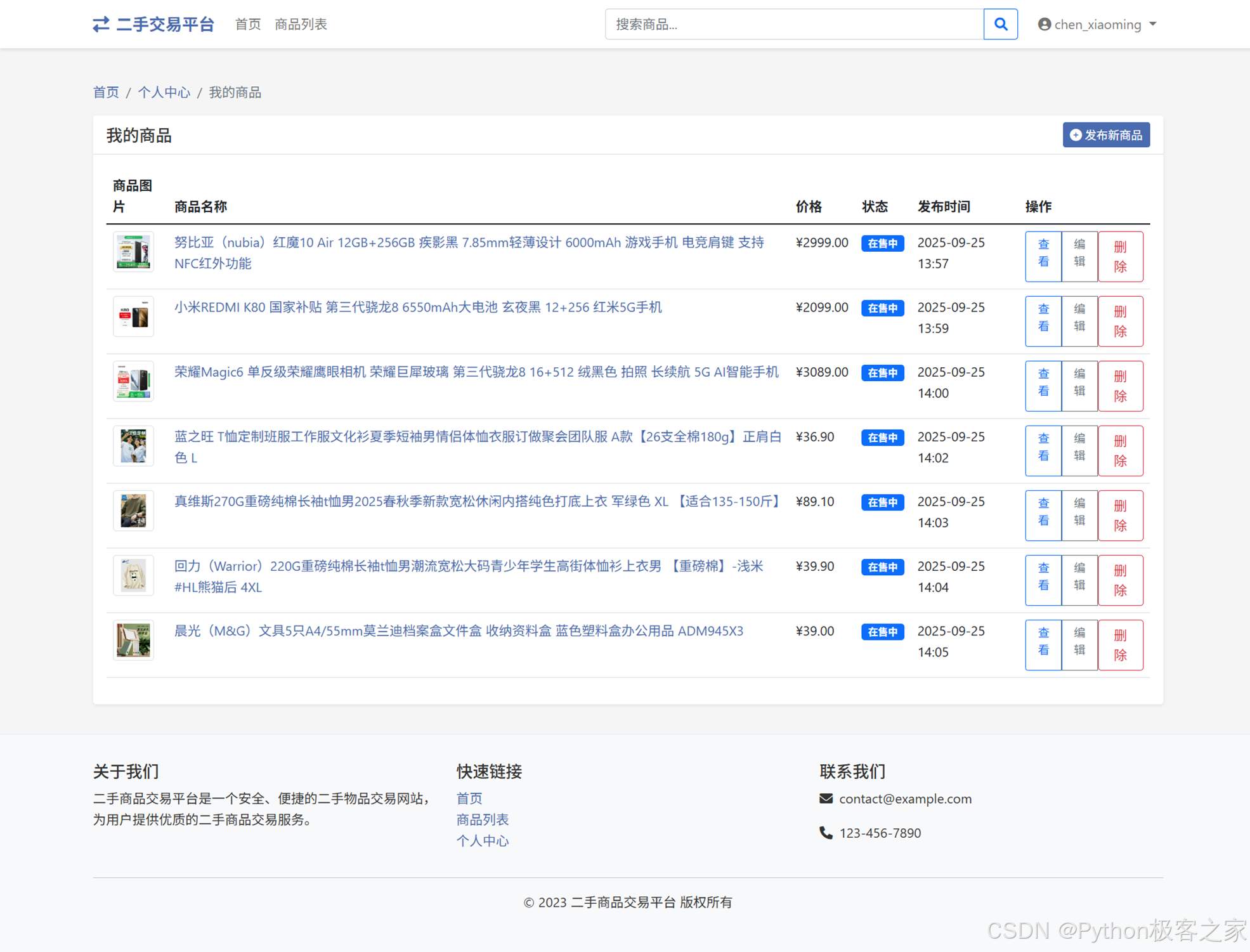 随着互联网的发展,线上二手商品交易平台越来越受到人们的欢迎。传统的二手商品交易平台通常依赖于复杂的前端和后端架构,开发成本较高。而使用Python及其相关的Web框架和技术,可以快速搭建一个高效、可靠的二手商品销售平台。本项目旨在开发一个基于Python的二手商品销售平台,利用现代化的Web应用框架和数据库技术实现高效的二手商品管理与交易。该系统将涵盖商品发布、商品搜索、订单管理、用户评价等多个功能模块,旨在为用户提供一个全面的二手商品交易平台。通过该系统,用户可以方便地发布和购买二手商品,提高交易效率,减少中间环节。
