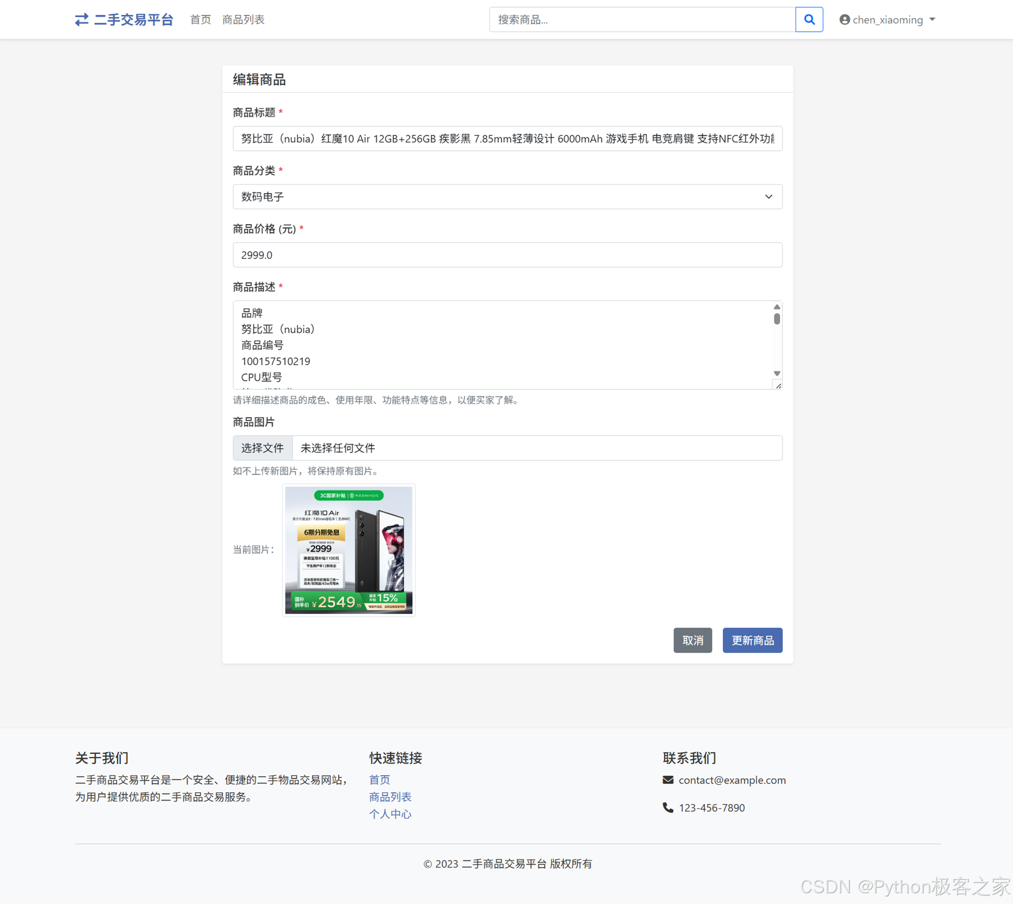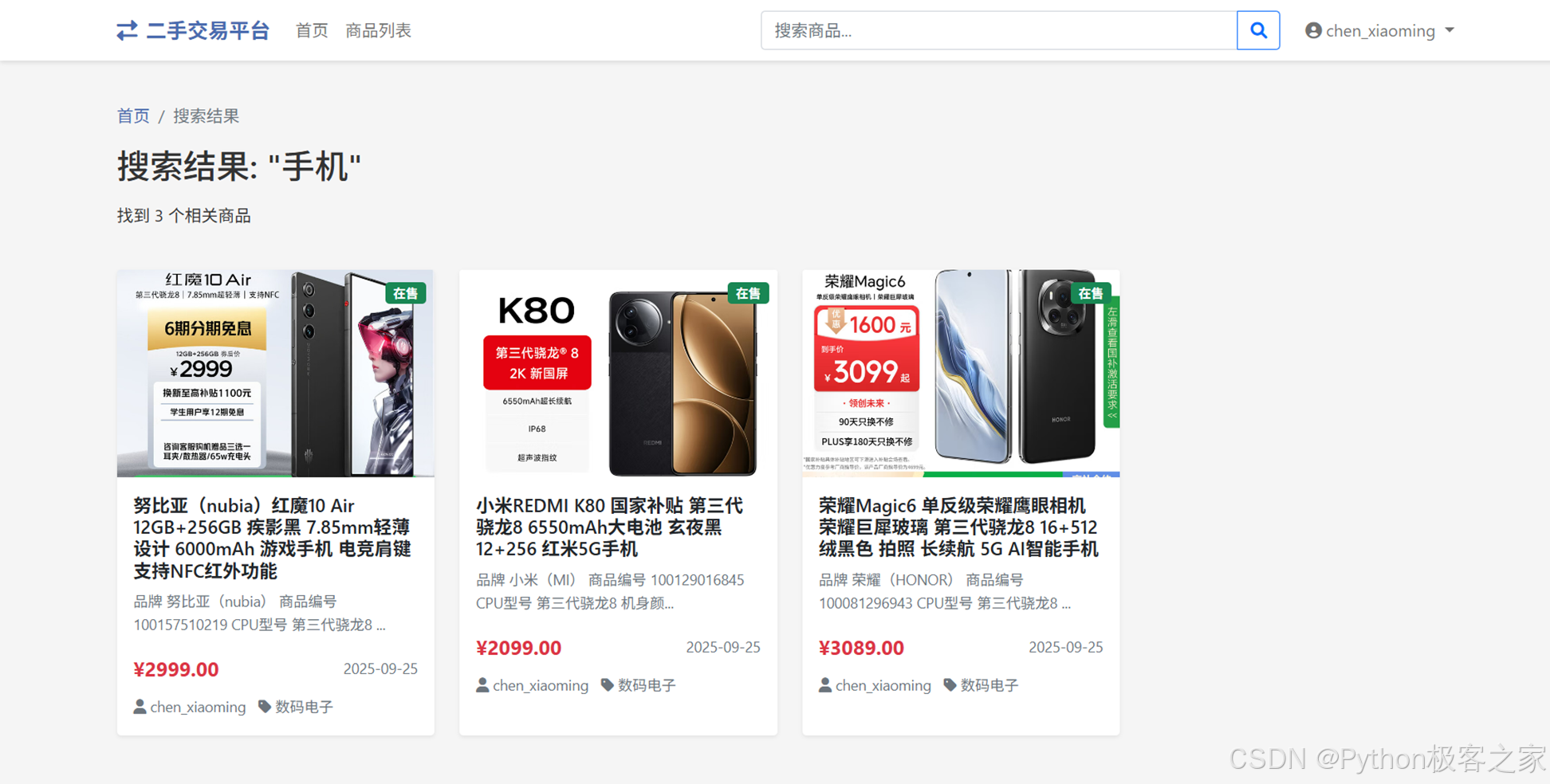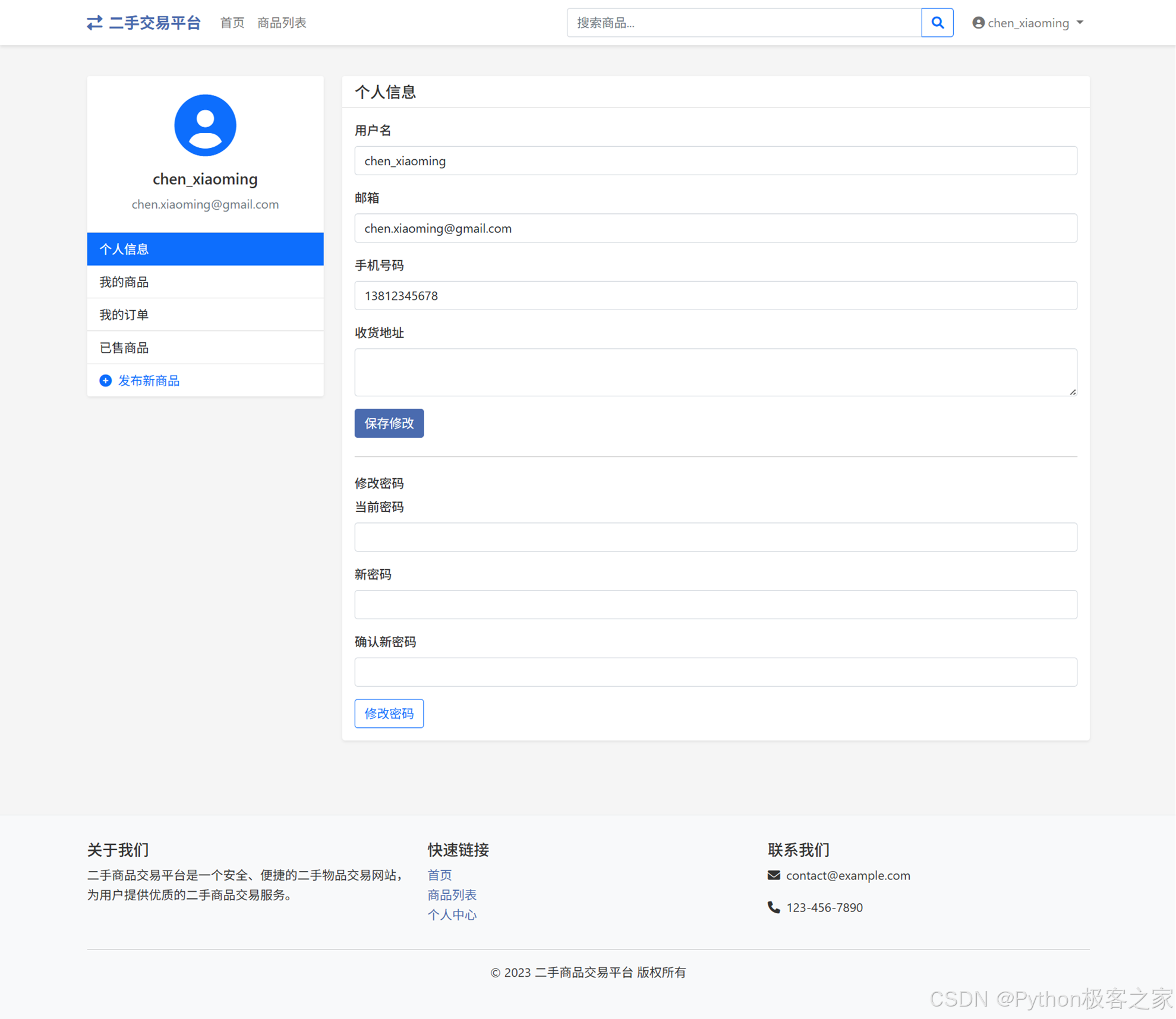 随着互联网的发展,线上二手商品交易平台越来越受到人们的欢迎。传统的二手商品交易平台通常依赖于复杂的前端和后端架构,开发成本较高。而使用Python及其相关的Web框架和技术,可以快速搭建一个高效、可靠的二手商品销售平台。本项目旨在开发一个基于Python的二手商品销售平台,利用现代化的Web应用框架和数据库技术实现高效的二手商品管理与交易。该系统将涵盖商品发布、商品搜索、订单管理、用户评价等多个功能模块,旨在为用户提供一个全面的二手商品交易平台。通过该系统,用户可以方便地发布和购买二手商品,提高交易效率,减少中间环节。