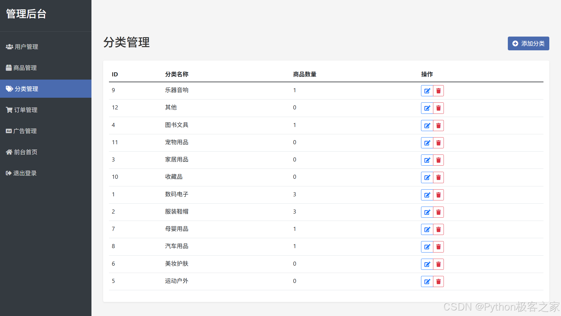 支持分类的添加、编辑、删除,便于商品分类维护与管理。
