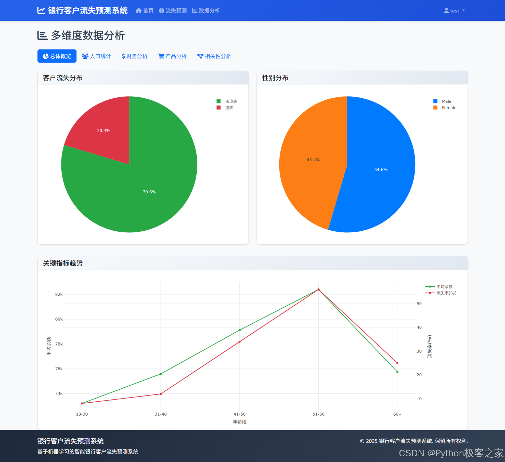 系统演示视频详见B站:基于机器学习的银行客户流失预测分析系统