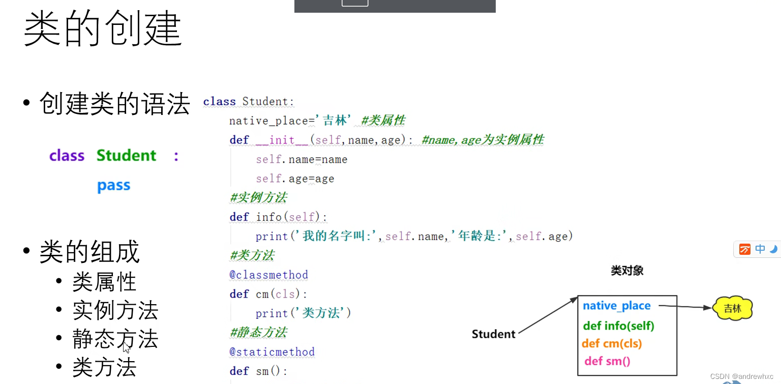 4、实例方法:def __init__(self,name,age):(name age是程序员自己定义的变量),作用:将实例对象初始化
