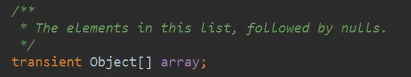 由上图一可知,ArrayList实现了Serializable接口,可以进行序列化操作,而由图二可知,其中保存内容的数组array被transient关键字修饰,不会被序列化,那么问题来了,这到底是咋回事呢?