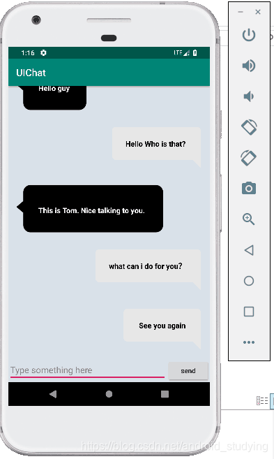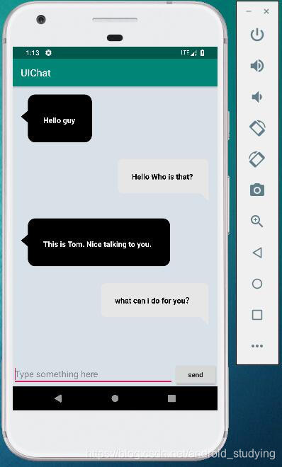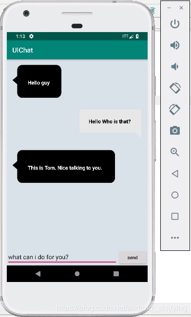 最后修改MainActivity.java代码,来为RecyclerView初始化一些数据,并给发送按钮加入事件响应,代码如下所示: