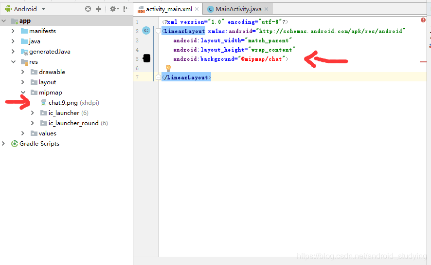 我们将这张图片设置为LinearLayout的背景图片,修改activity_main.xml中的代码,如下所示: