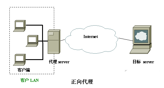 1 正向代理: 客户端无法直接访问外部的web,需要在客户端所在的网络内架设一台代理服务器,客户端通过代理服务器访问外部的web(需要在客户端的浏览器中设置代理服务器)