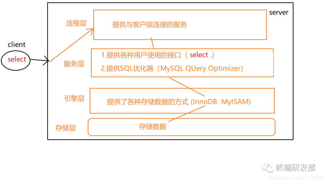 MYSQL逻辑分层 :连接层 服务层 引擎层 存储层