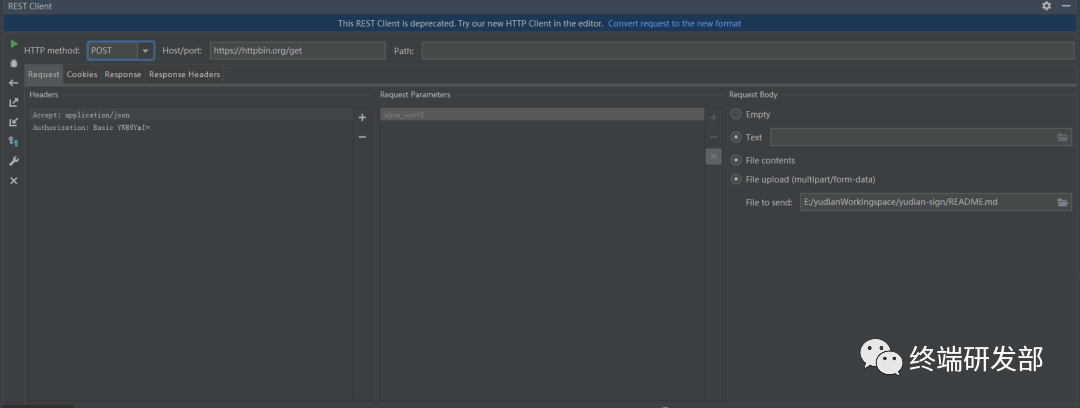 IDEA REST Client的请求配置可以用文件配置描述,所以可以跟随项目和项目成员共享IDEA REST Client控制台