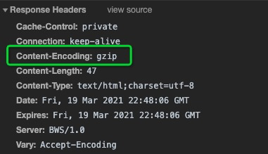 启用 gzip 同时需要客户端和服务端的支持,如果客户端支持 gzip 的解析,那么只要服务端能够返回 gzip 的文件就可以启用 gzip 了,我们可以通过 Nginx 的配置来让服务端支持 gzip 。下面的 respone 中 content-encoding:gzip ,指服务端开启了 gzip的压缩方式。