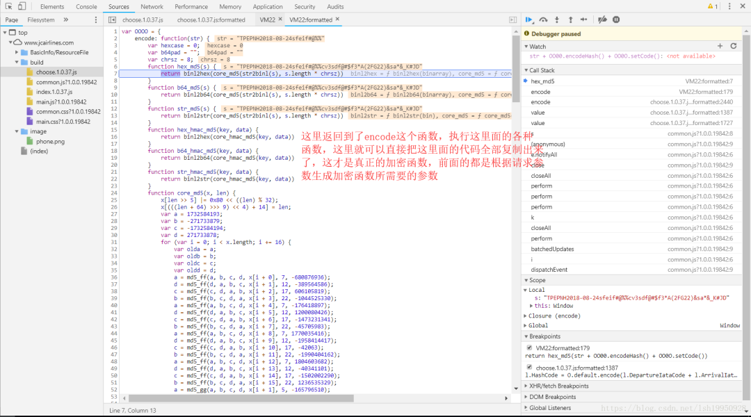 这样可以阅读代码了,然后轻松找到设置HashCode的地方,然后打一个断点,随便查一条航线的数据,如下图。