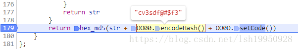 单步执行走到这一步,有些眉目了,执行到了encode指向的匿名函数这,里面代码看似应该是各种加密函数,不用读懂它,因为目标只是执行它,得到相应的结果就行了