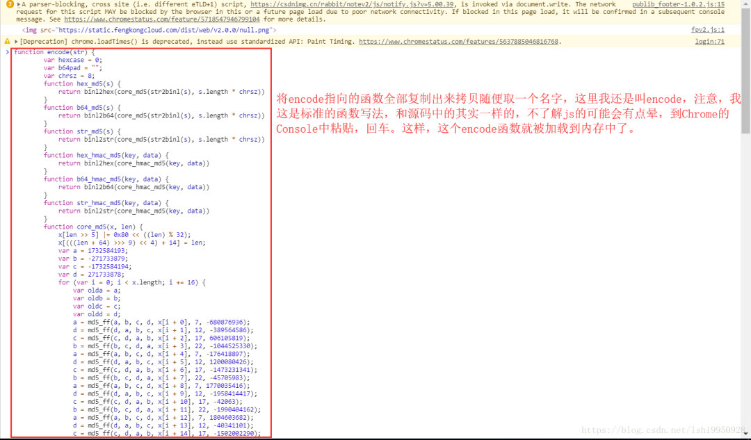 最终找到了这个匿名函数,复制encode所指向的函数,然后随便取一个名字,方便调用,另外,在另一个窗口中打开Console粘贴代码,如下图: