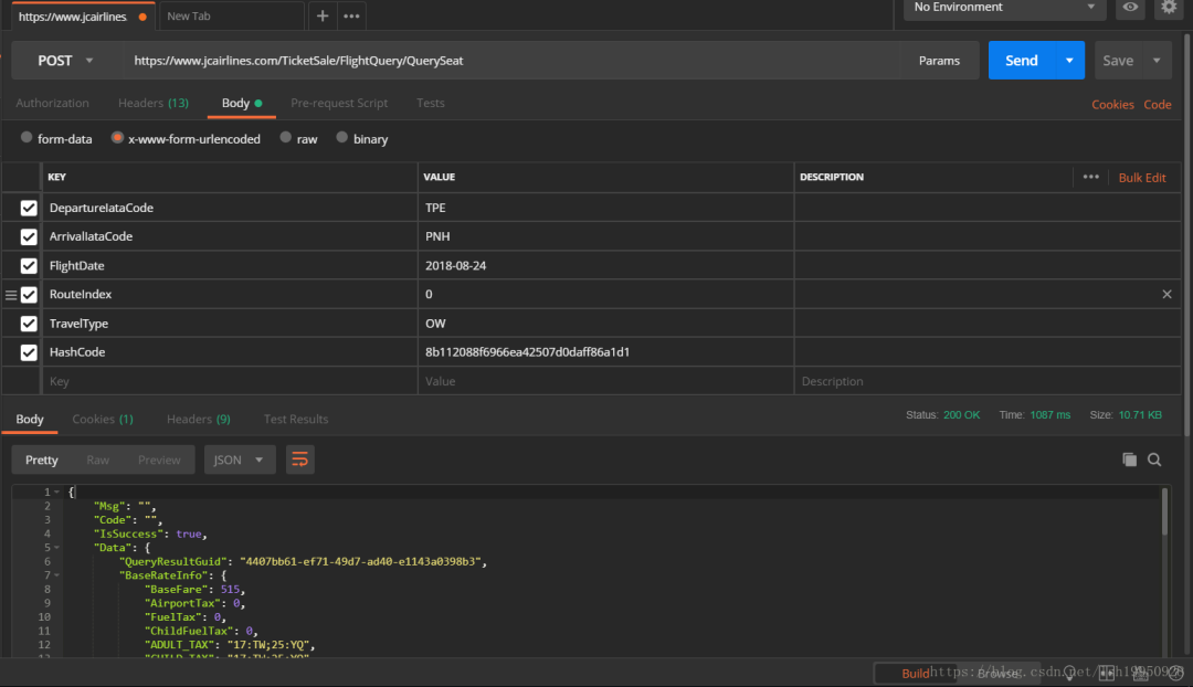 接口地址:https://www.jcairlines.com/TicketSale/FlightQuery/QuerySeat
