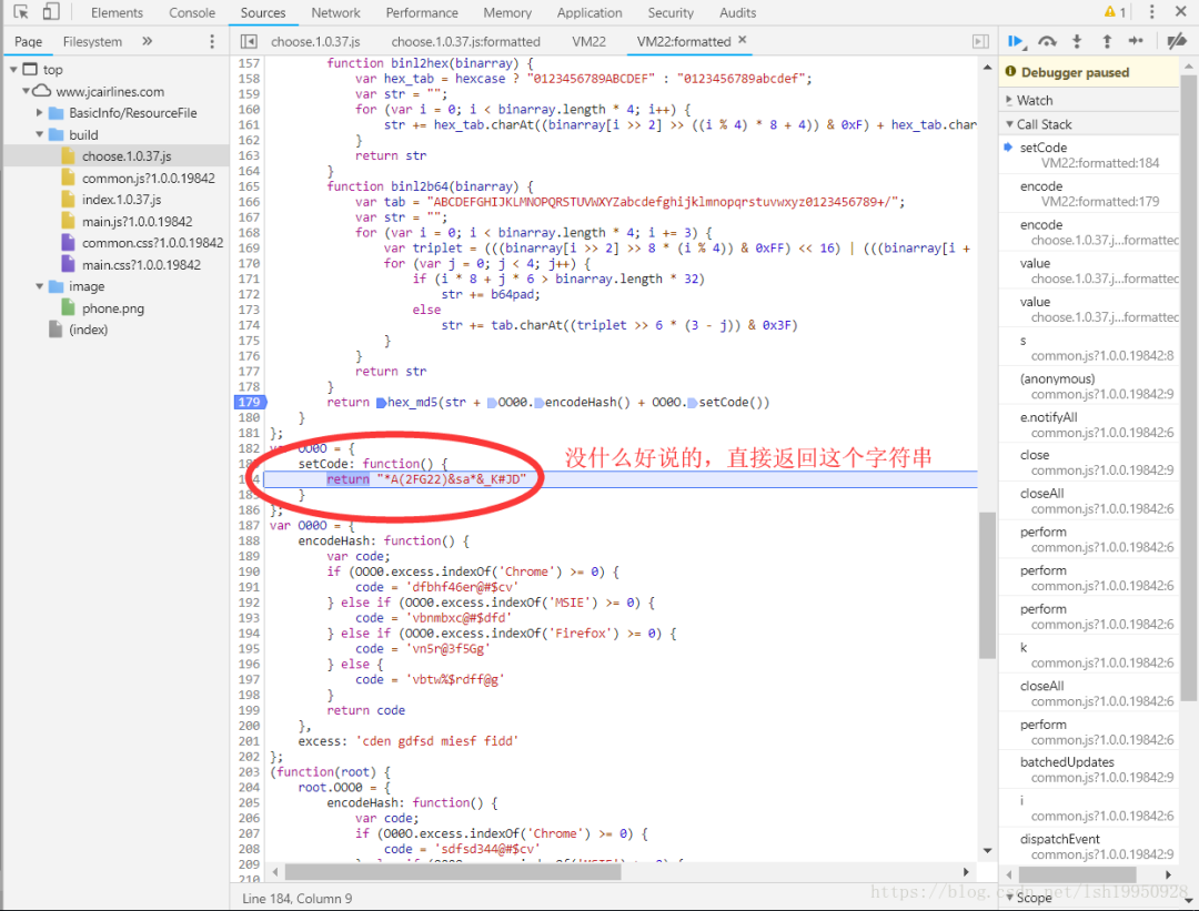最后需要交代的:“sfei#@%%”这的到底是哪来的,也没有寻根,我就直接告诉答案,其实这个值就在当前的网页中,是一个js变量,且是一个固定值,这也是我不想寻根的原因,意义不大。另外在使用http爬虫的时候headers里面的内容也必须和HashCode相匹配,什么意思呢,之前代码出现过通过浏览器种类,生成不同的字符串,也就是说具体HashCode是和浏览器有关,所以在构造headers时需要填写对应的User-Agent,不然服务器进行校验的时候还是不会响应的,可以猜测服务器中也有一段功能相同的代码,它根据请求参数和headers中User-Agent进行加密计算,得到HashCode以此来验证请求的HashCode是否合法。