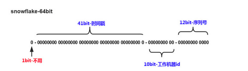 Twitter的snowfalke算法解决了分布式系统生成全局ID的需求,生成64位Long型数字,组成部分: