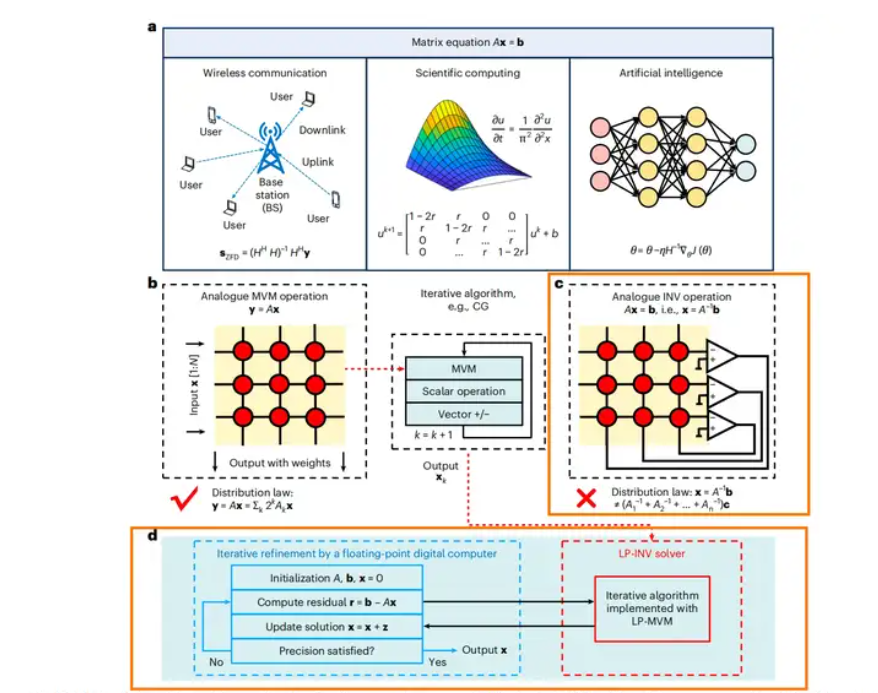 传统数字计算在处理这一核心任务时能耗效率低下。此项研究转向模拟计算,通过物理定律直接实现矩阵运算,在理论上实现了速度和能效的飞跃。